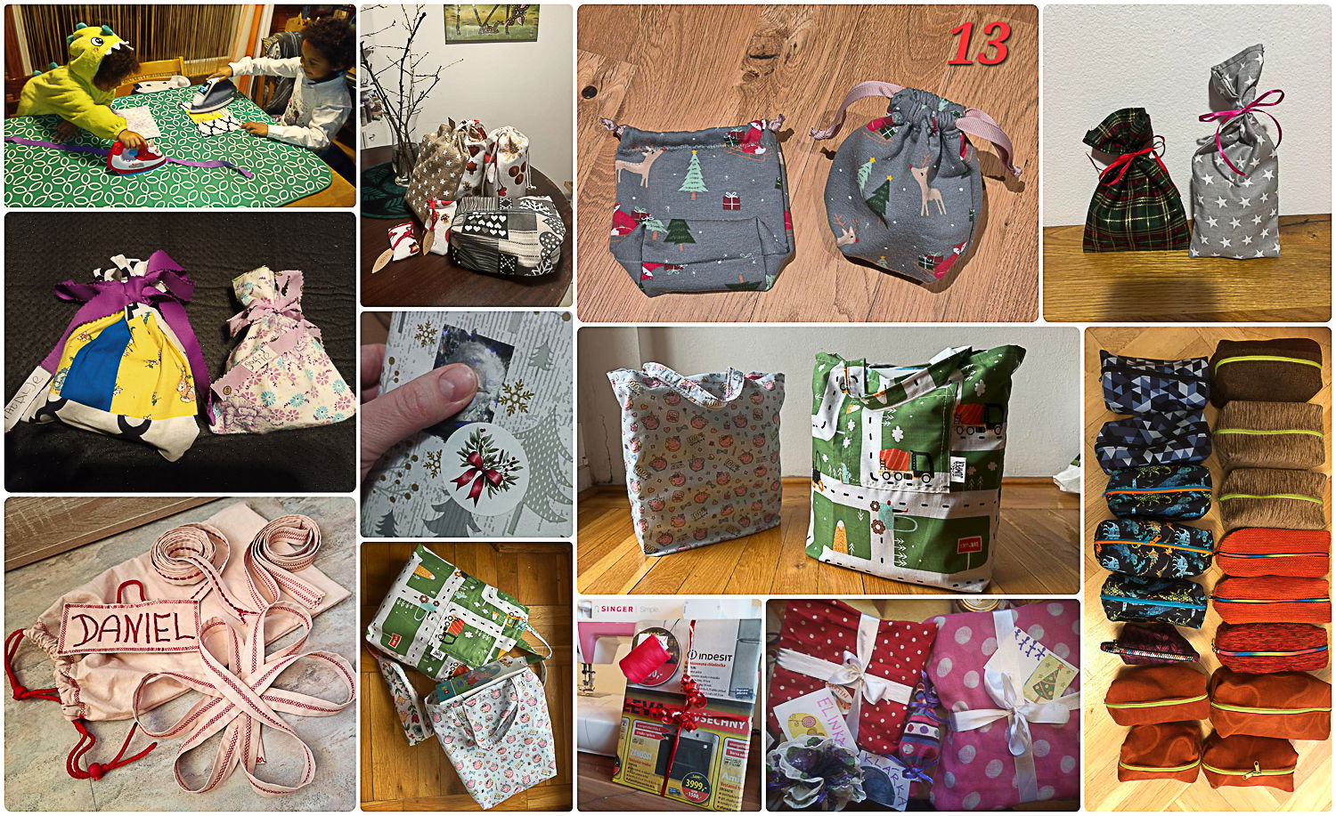 Ráda šiju dárkové pytlíčky různých velikostí, nejlépe ze zbytků nějaké vánoční látky. Pytlíčky na menší dárečky právě došity, další jsou v procesu 🙂