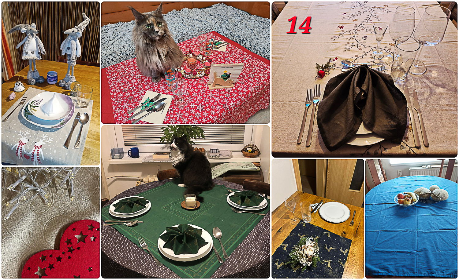 My letos bez ubrusu jinak by to letělo se vším, máme živého dvouleťáka. Na zdobení stolů si ještě rok raději počkám.