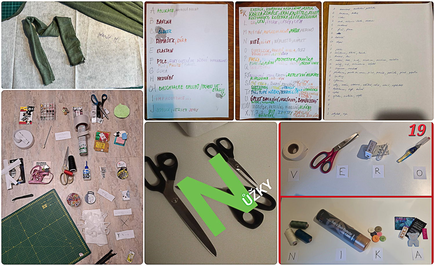 Hráli jsme si se slovy a hledali, jestli najdeme slova z šicího světa na všechna písmena abecedy.