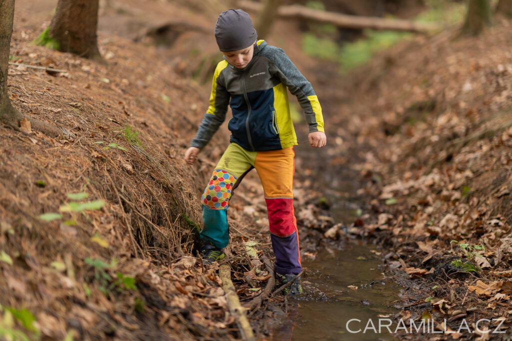 Do bahna a rozmočeného sněhu dávám já osobně už oblečení koupené gumové. Při mrazech přes den naopak dávám koupené oteplovačky. Naše děti jsou venku třeba 2 hodiny, a nemusí se nutně hodně pohybovat – jelikož s dětmi ve školce nejsem a nemohu hlídat dostatečný pohyb, dávám raději oteplovačky. Lze ale s dobrým podvlečením nosit softshell i celý rok, i v mrazech, ale chce to pod něj už merino kamaše a to si nemohu být jistá, že ve školce v chaosu oblékání 25 dětí mému dítěti obléknou.