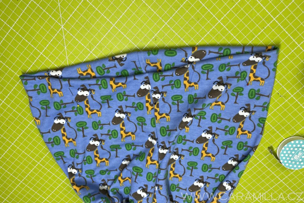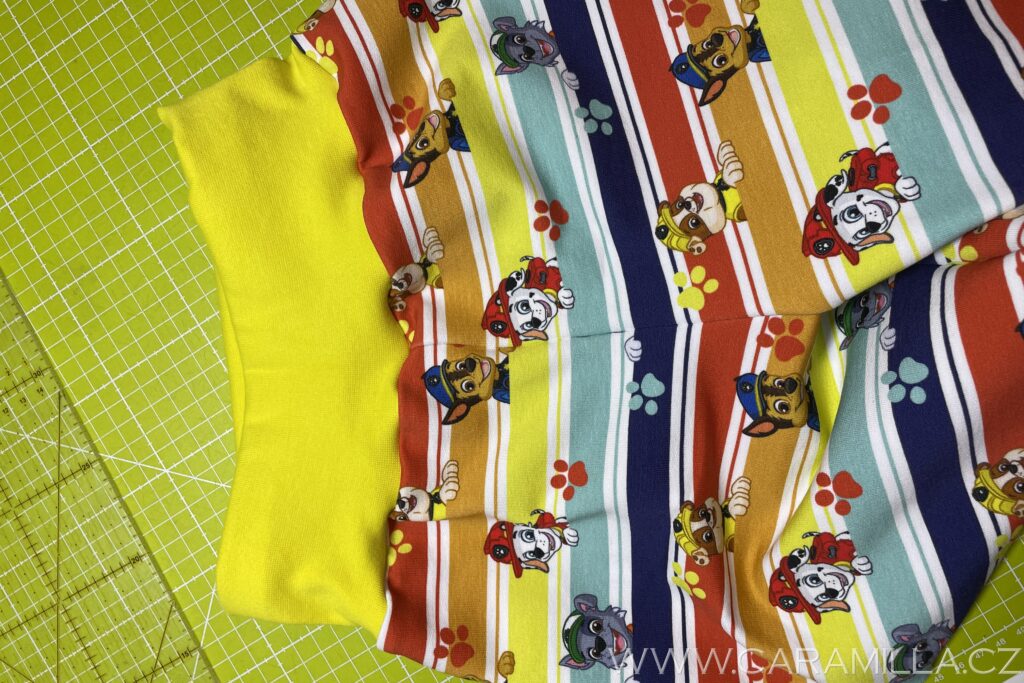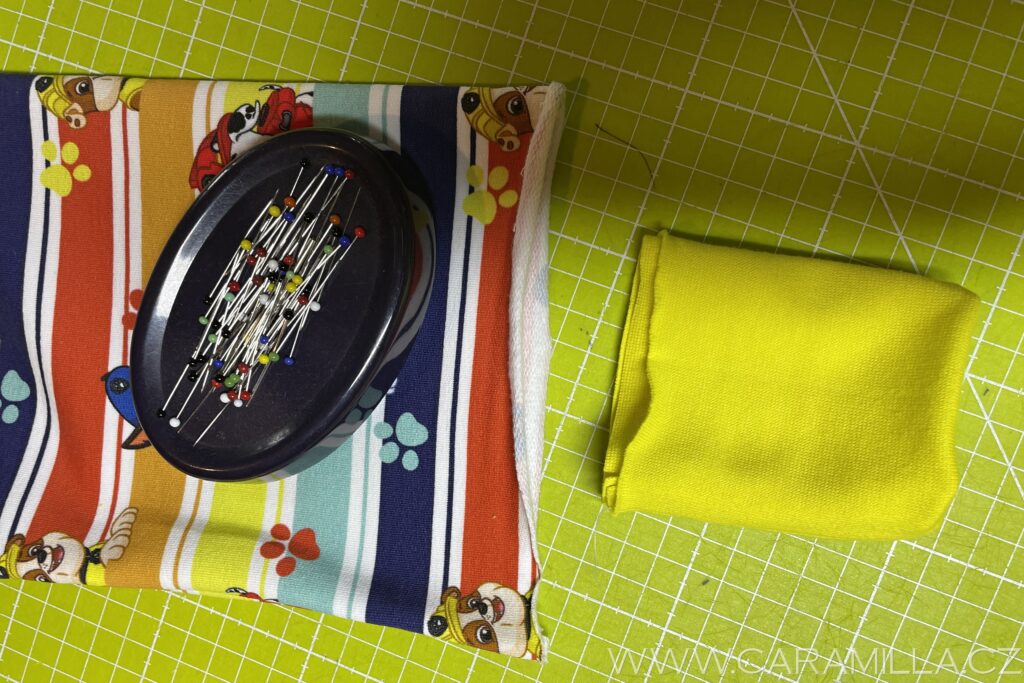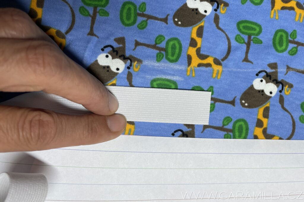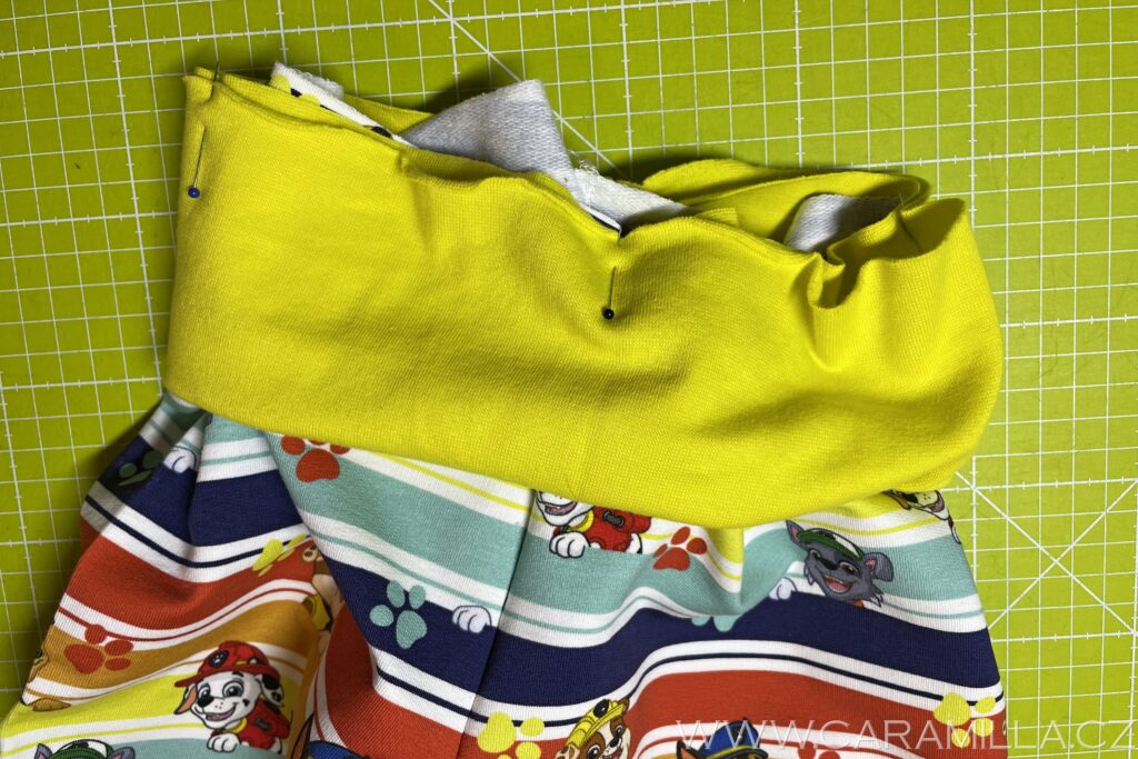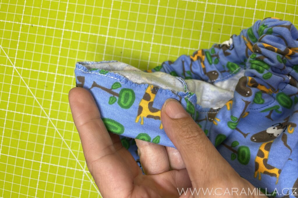 Nyní navlečeme pruženku – tu si odměříme podle pasu dítěte (já mám pro Jakuba 128 vel. 48 cm + kus na sešití).