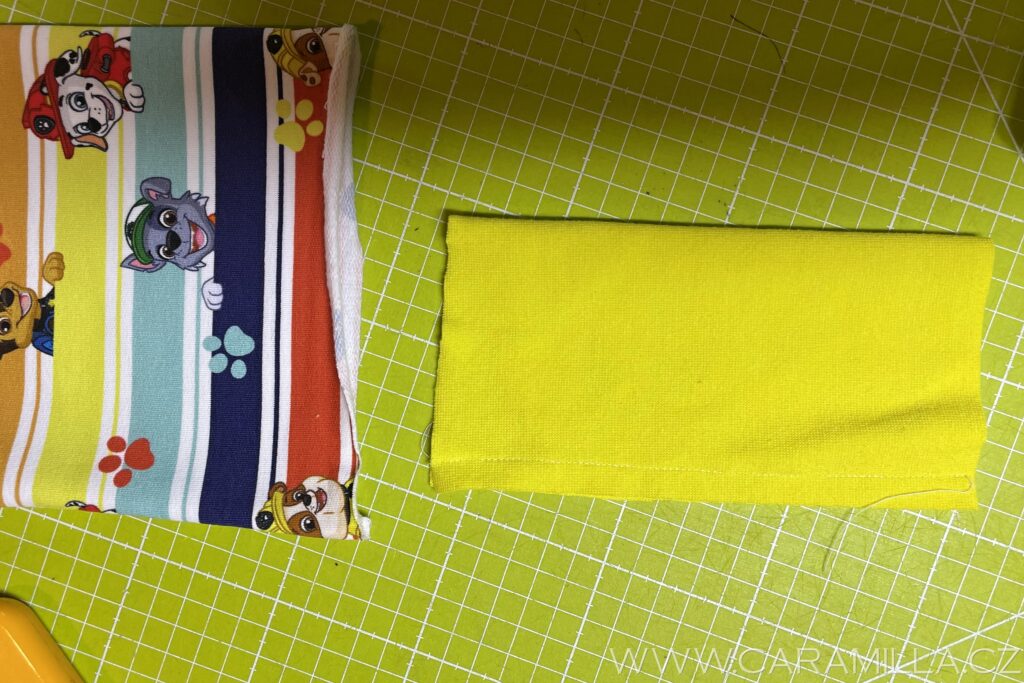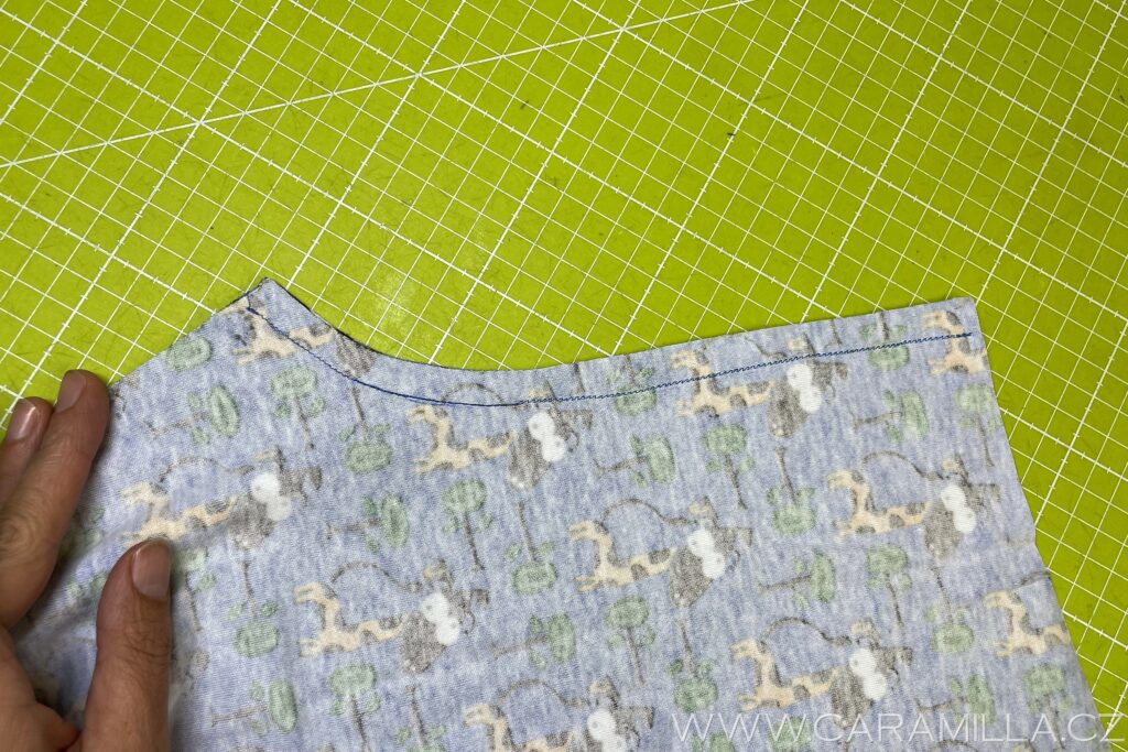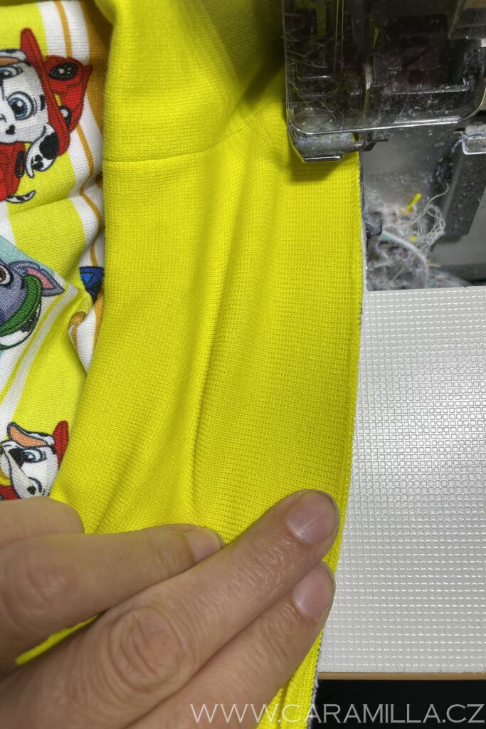 Pak přiložím na sebe a pevně držím, aby se okraje nerozjely a prošiji – zde je overlock.