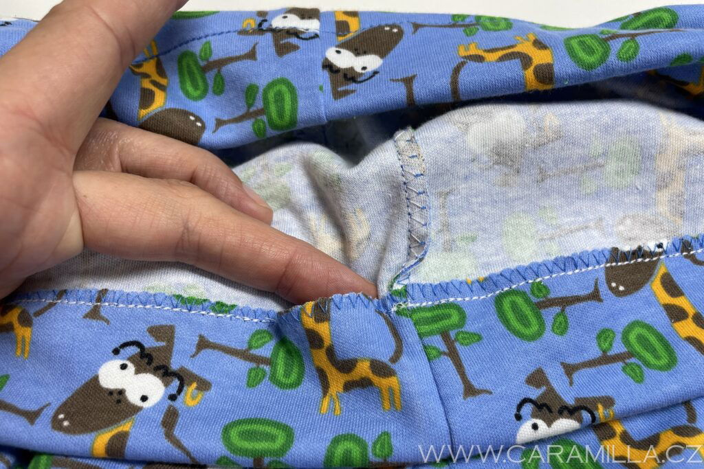 Konce nohavic i pas obšijeme cikcakem.