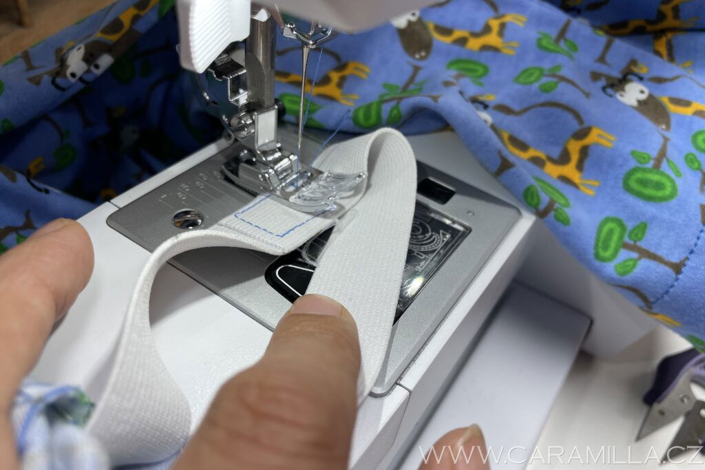 Prošijeme pružícím stehem dokola a necháme si mezírku na navlečení gumy!