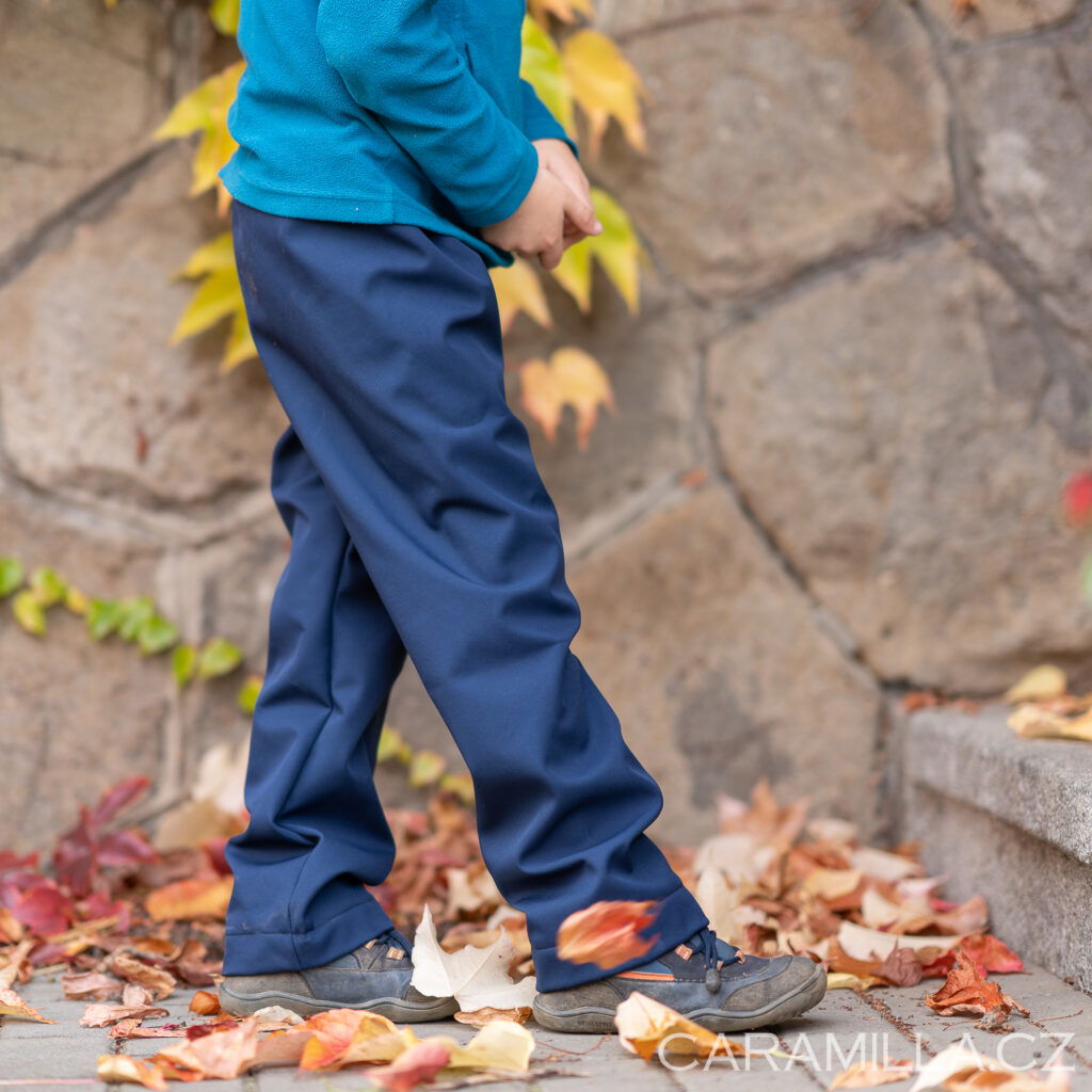 Kalhoty jsou mírně volnější – pro hubenější děti (asi tak jako mám já) jsou vhodné i na podvlékání silnějšími tepláky. Typově jsou široké zhruba jako kalhoty NORMAL, které jsou z mé nabídky softshellových kalhot nejoblíbenější.