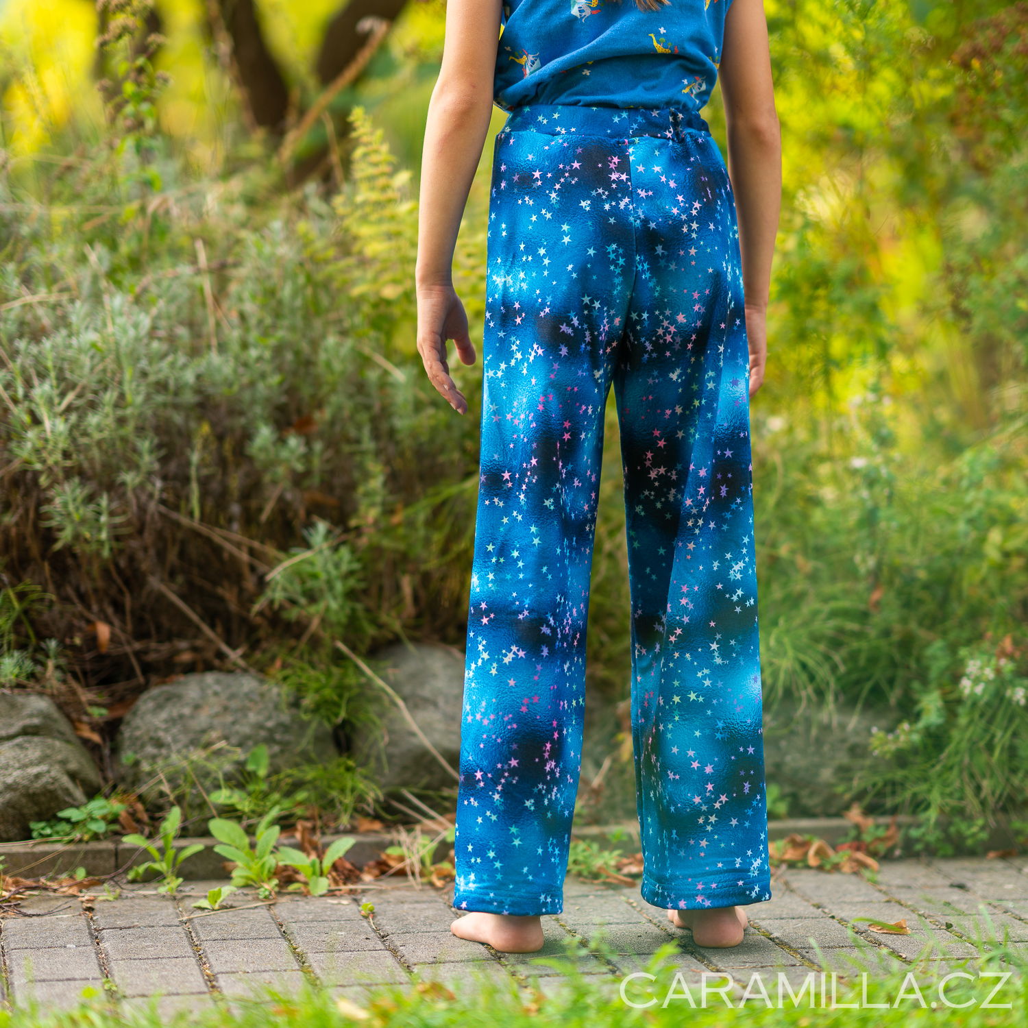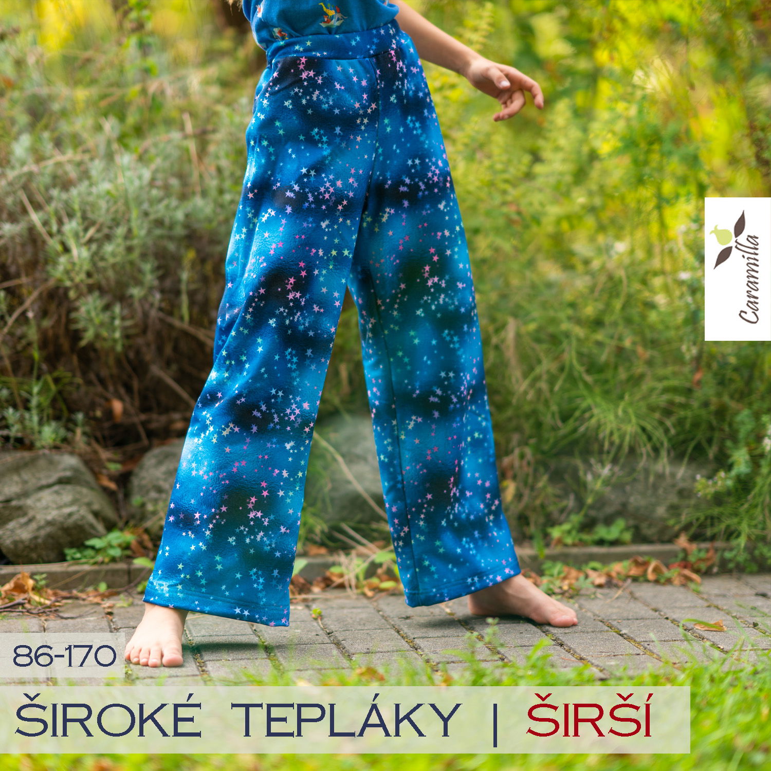 Střih na pohodlné široké tepláky ve dvou variantách pro děti ve velikostech 86-170.