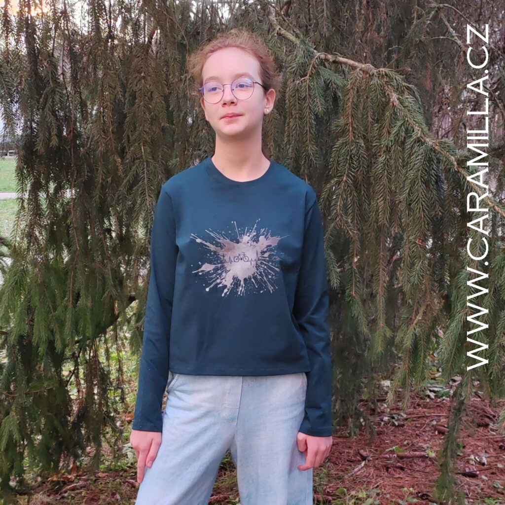 Triko je koncipováno jako volné. Šít jej můžete tedy i z úpletů bez elastanu.