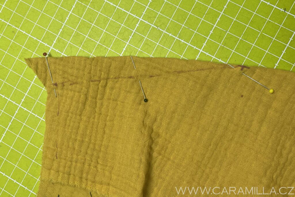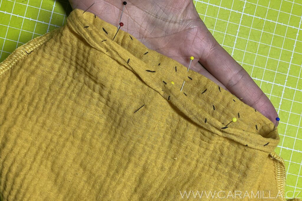 Připravíme si na šití – špendlíky nebo můžeme i nastehovat.