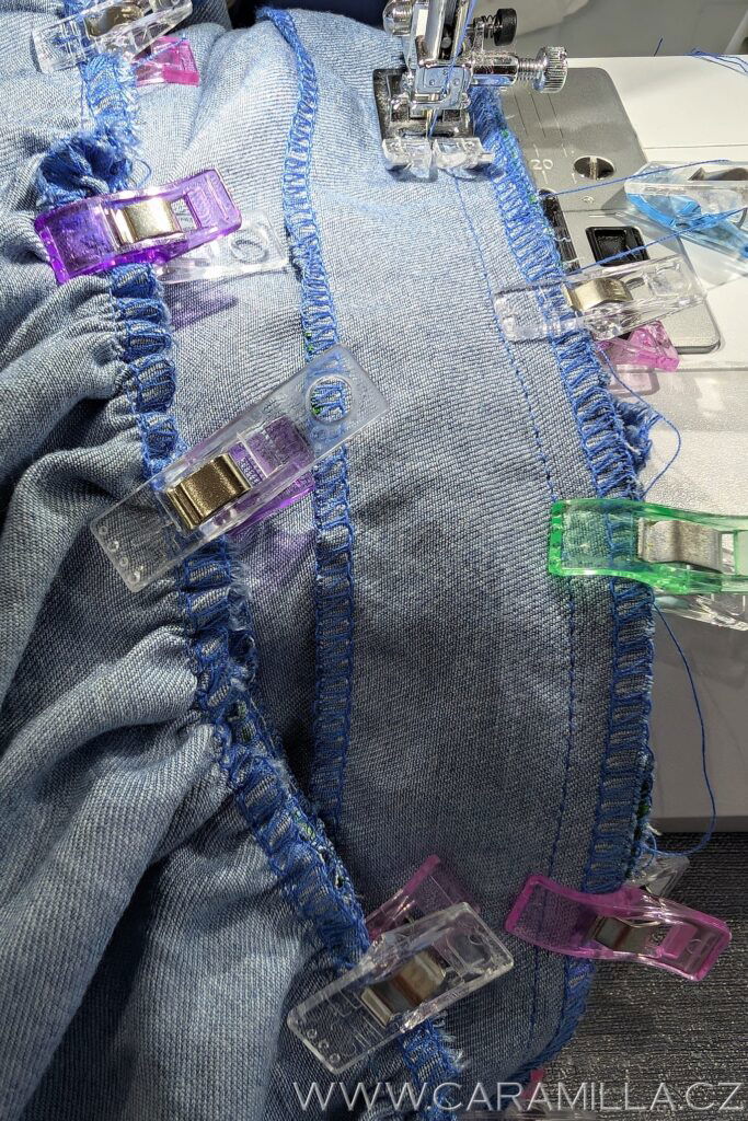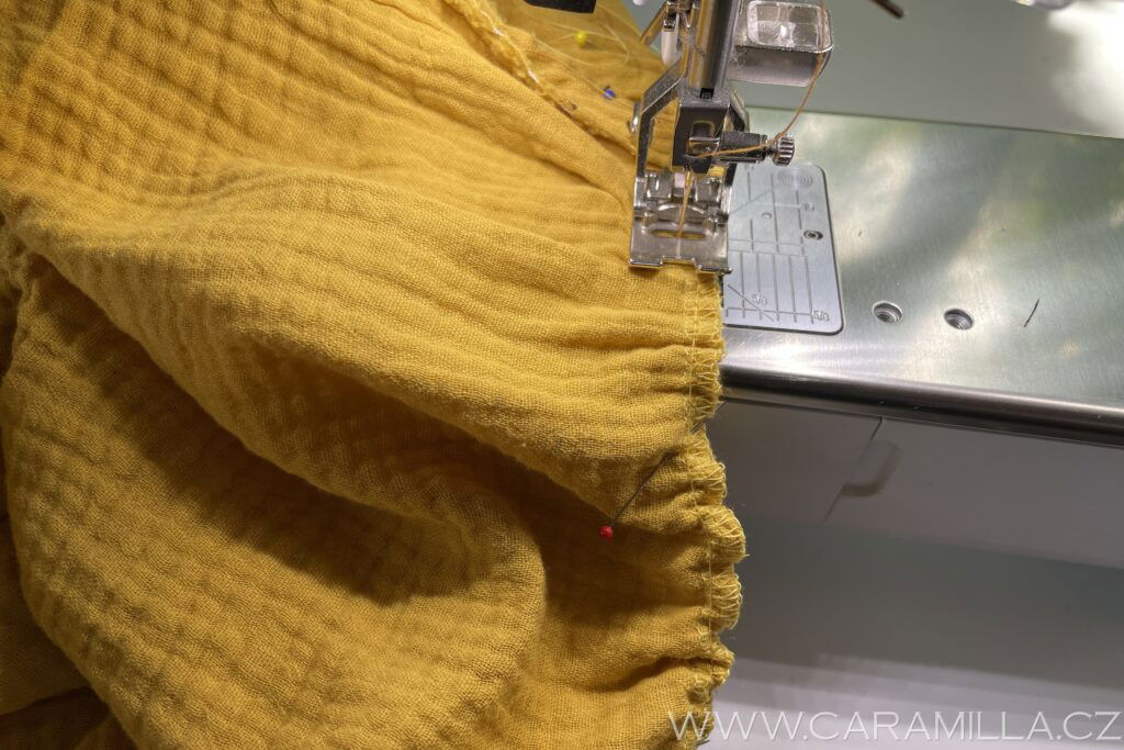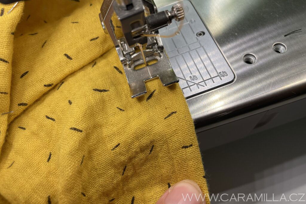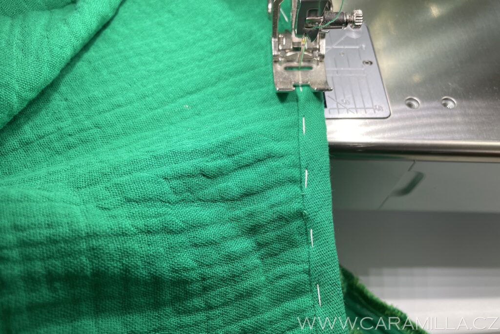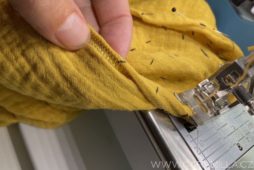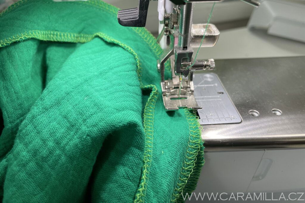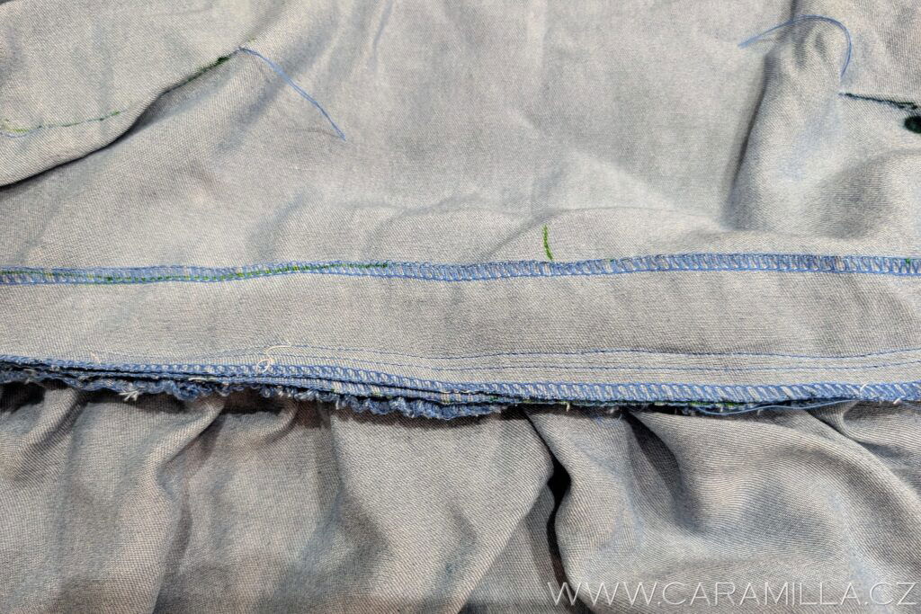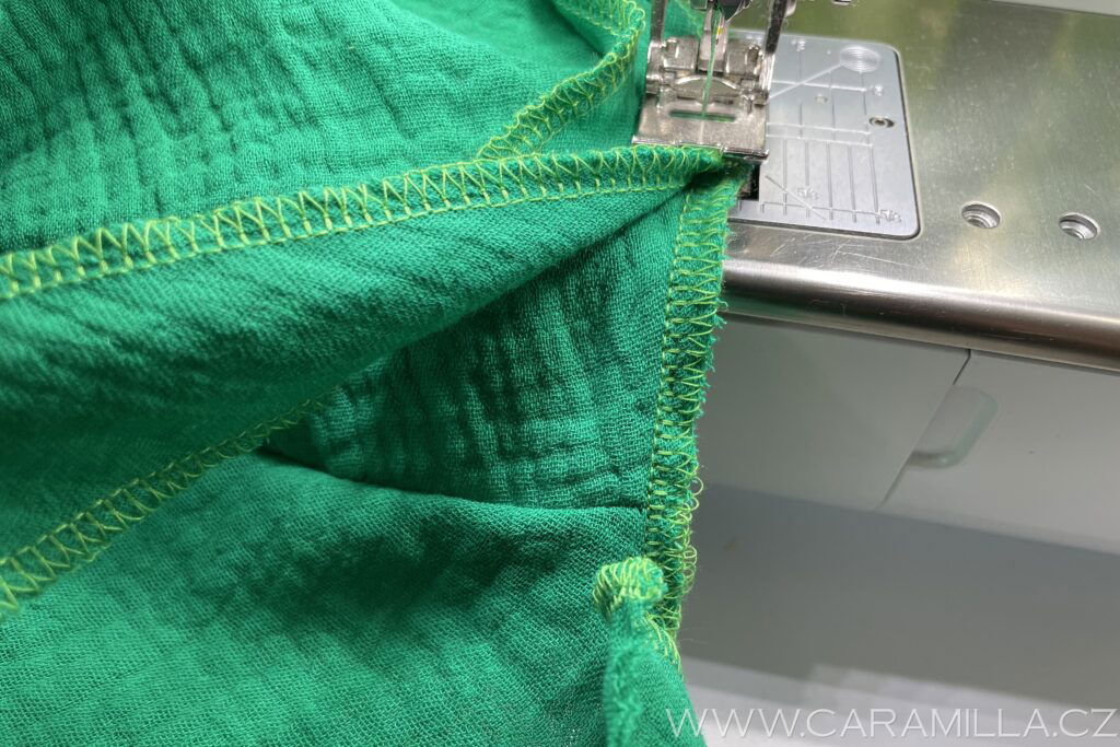 A proštepujeme ideálně na volném rameni dokola. Tak, aby šev byl na kraji lemu.