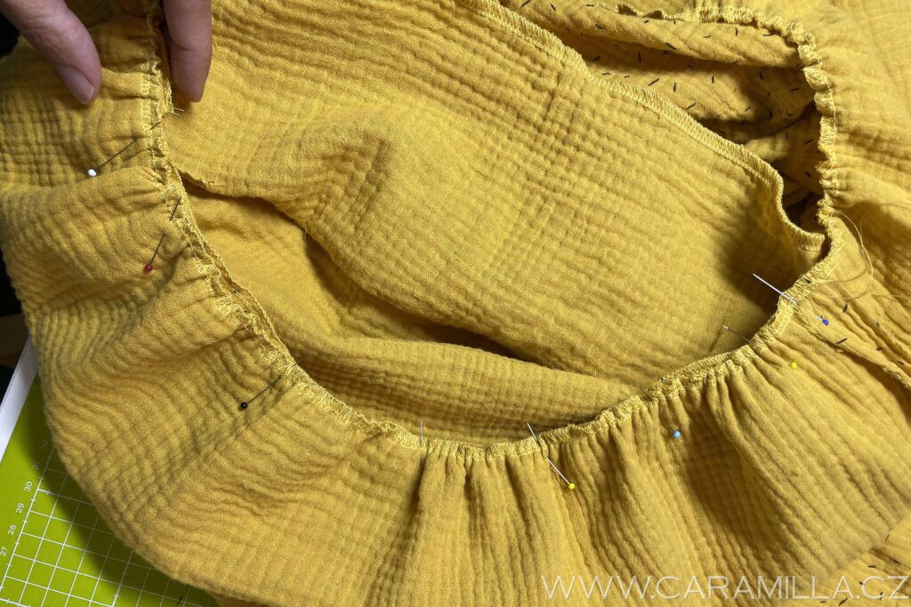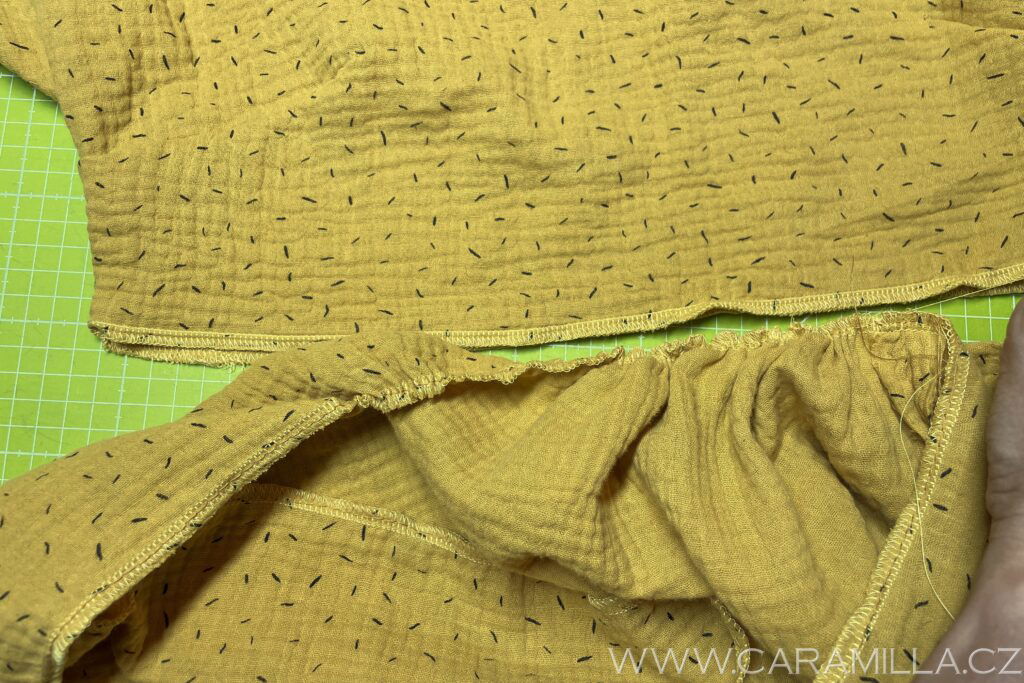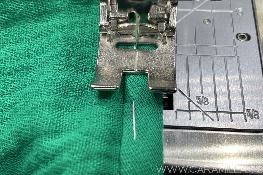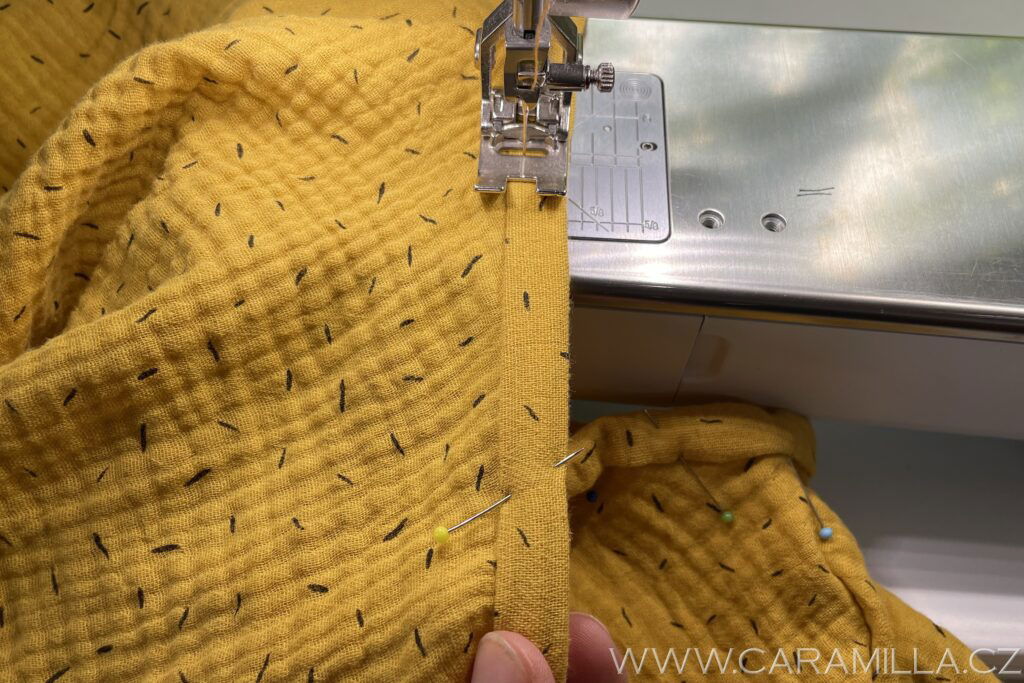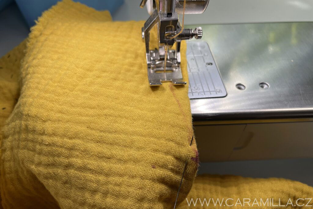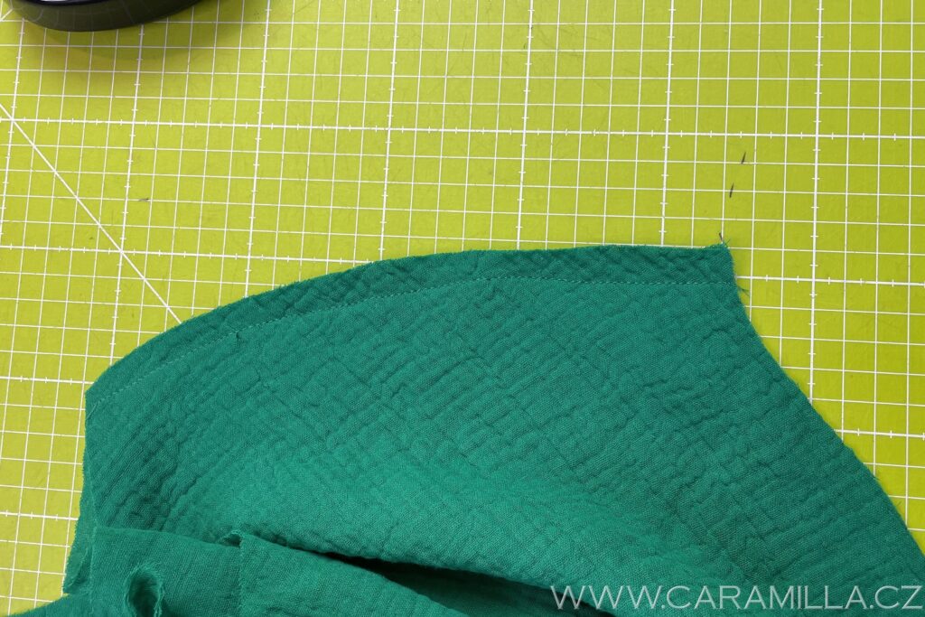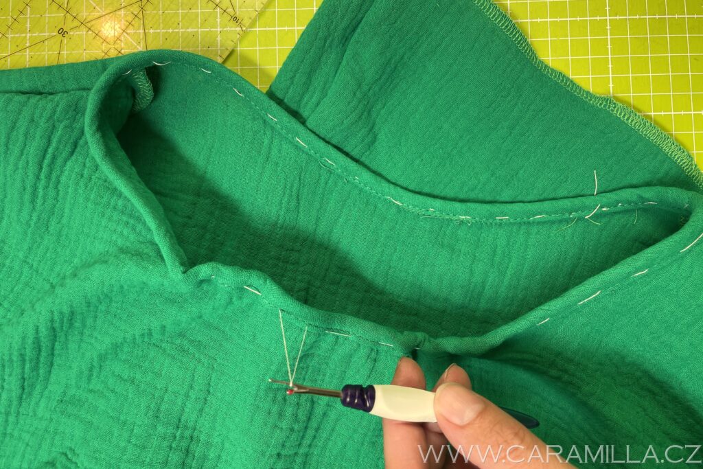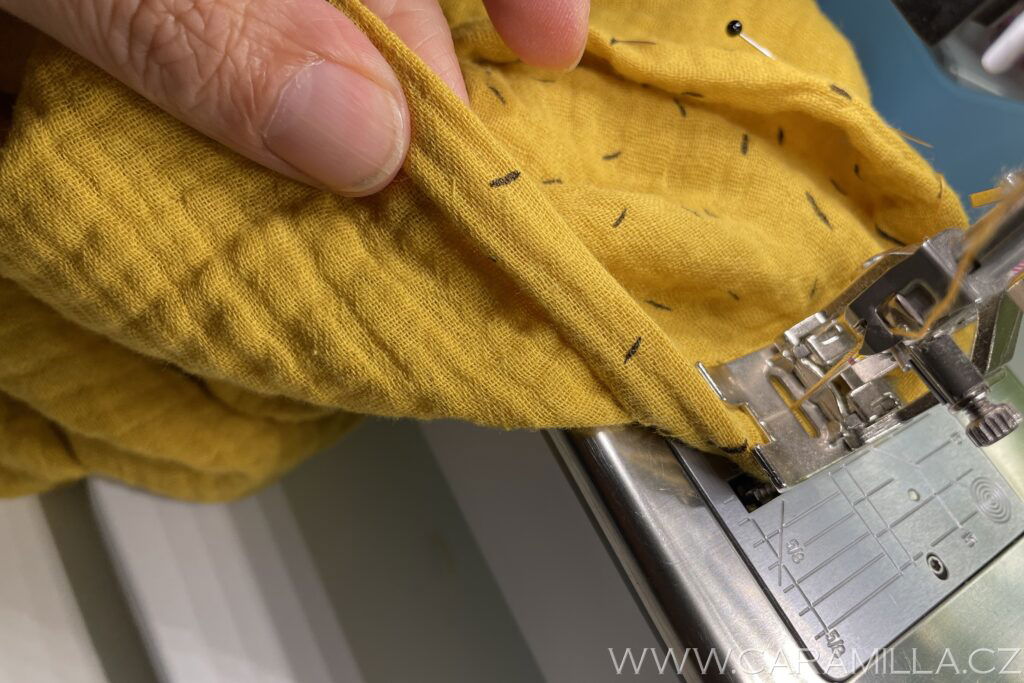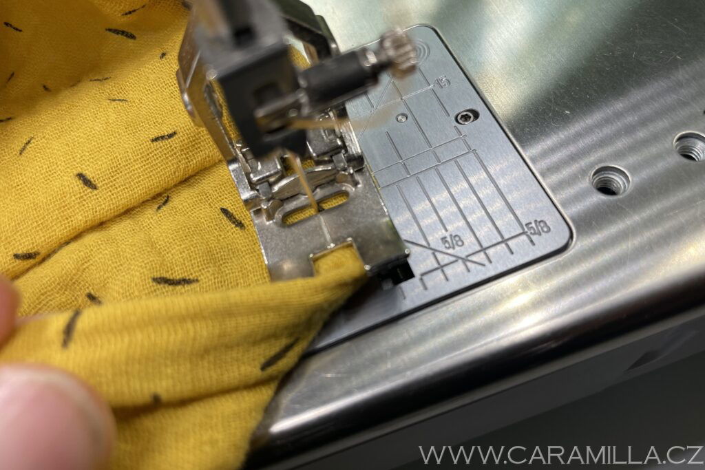 A proštepujeme ideálně na volném rameni dokola. Tak, aby šev byl na kraji lemu.