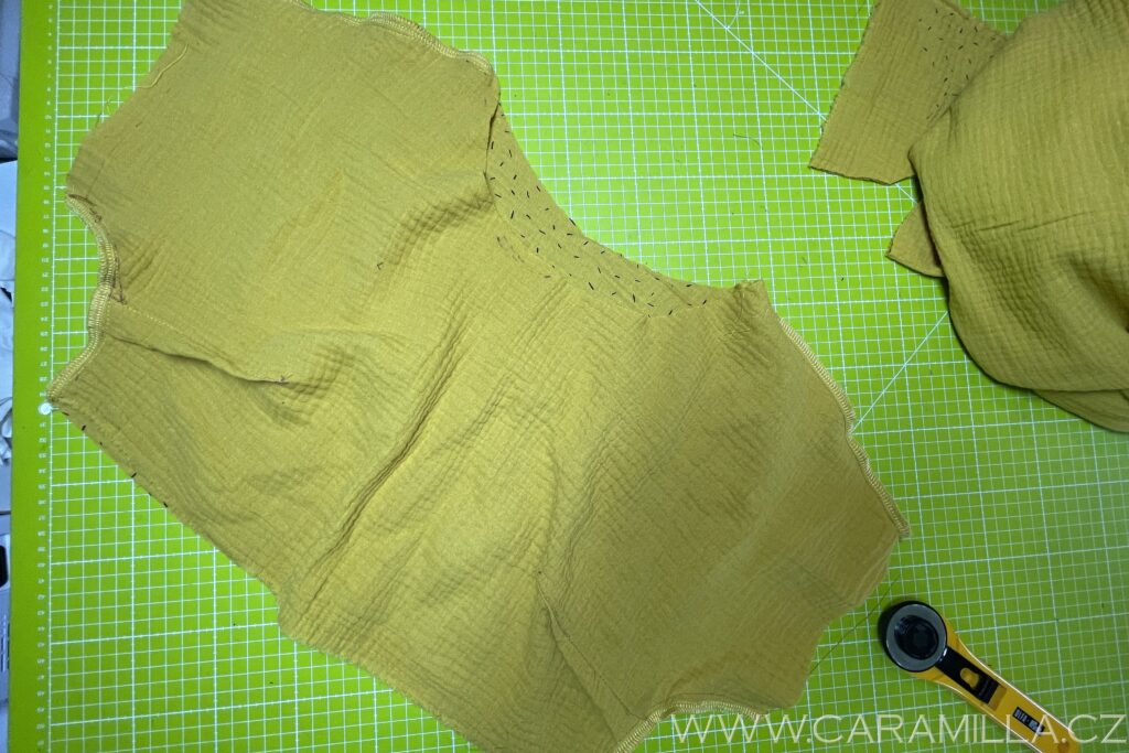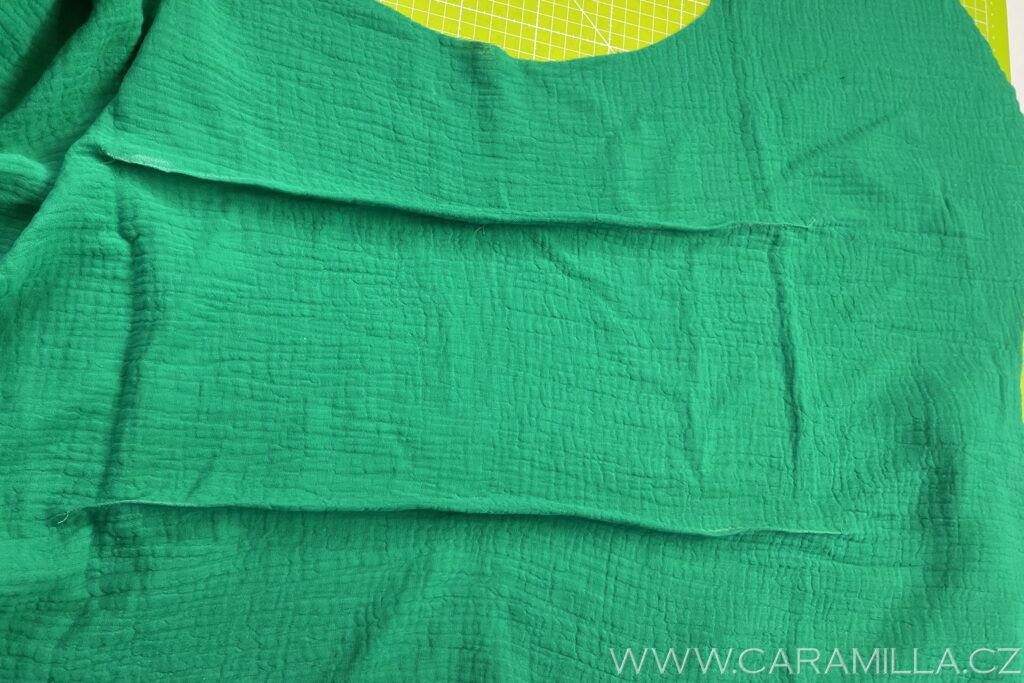 Opět našívání skončíme 5 cm od ramenního švu.