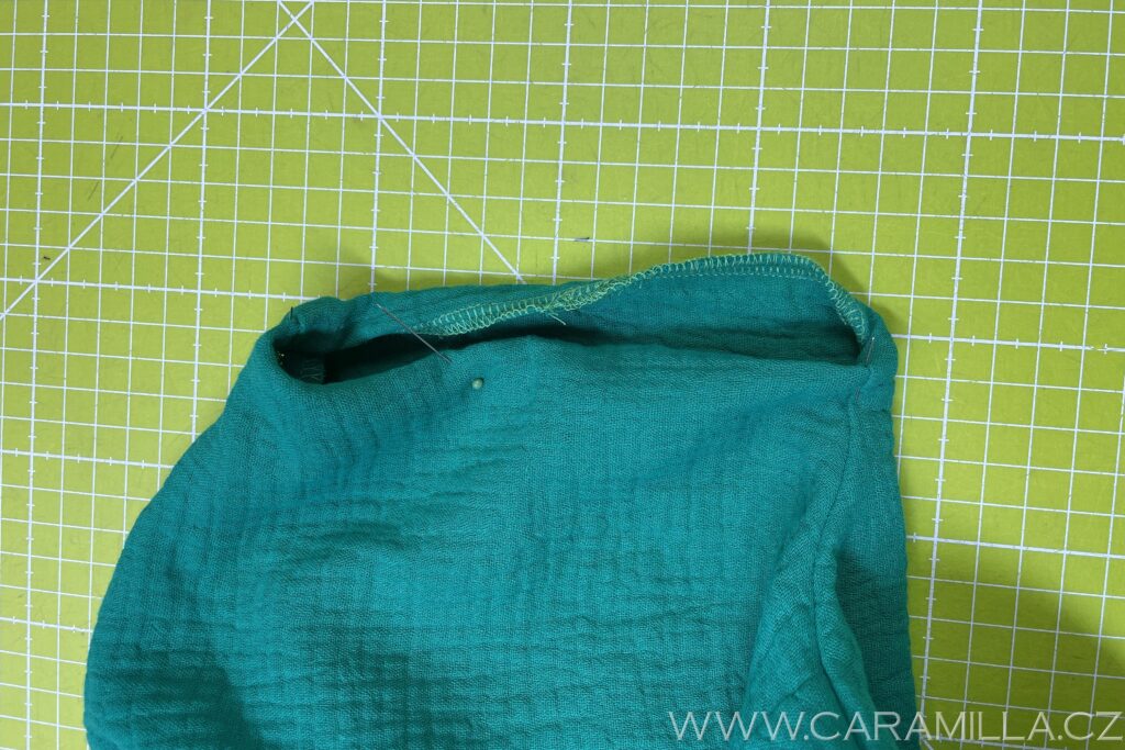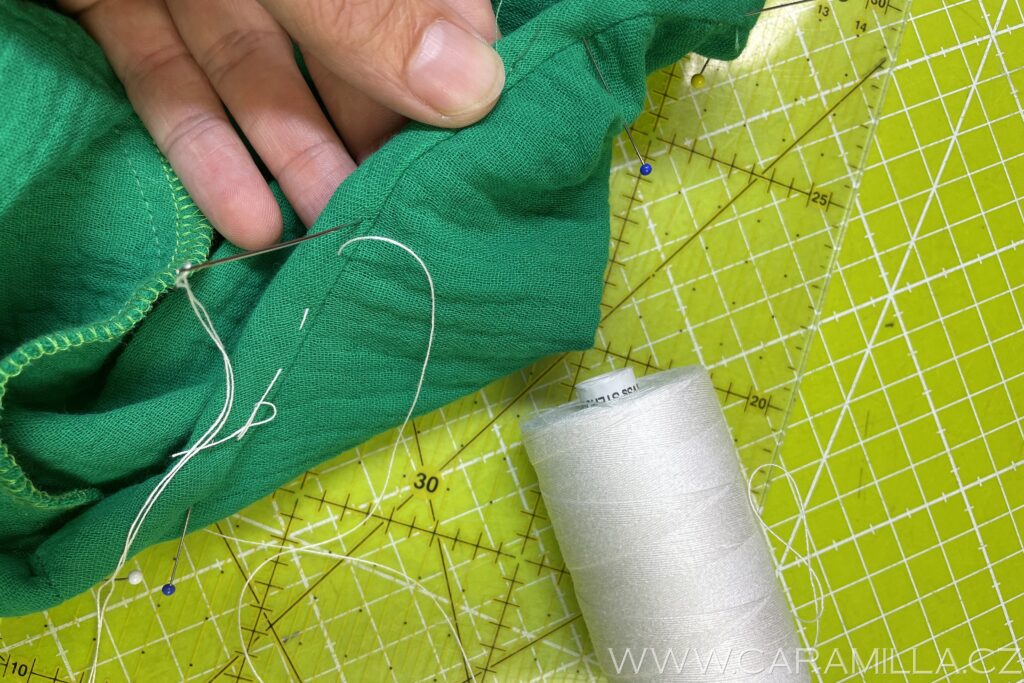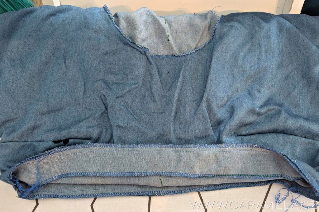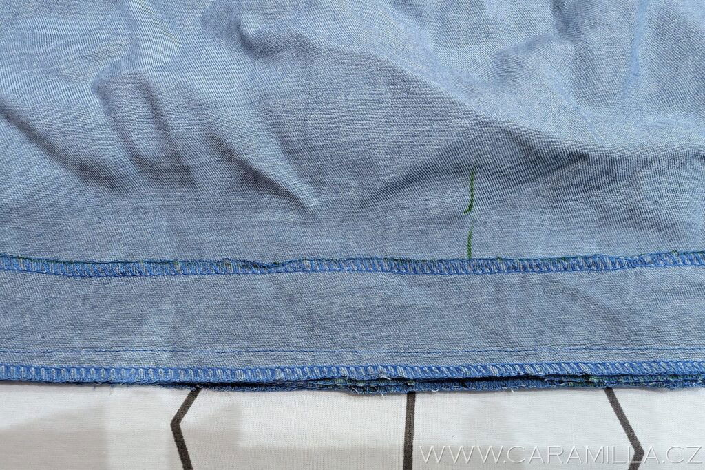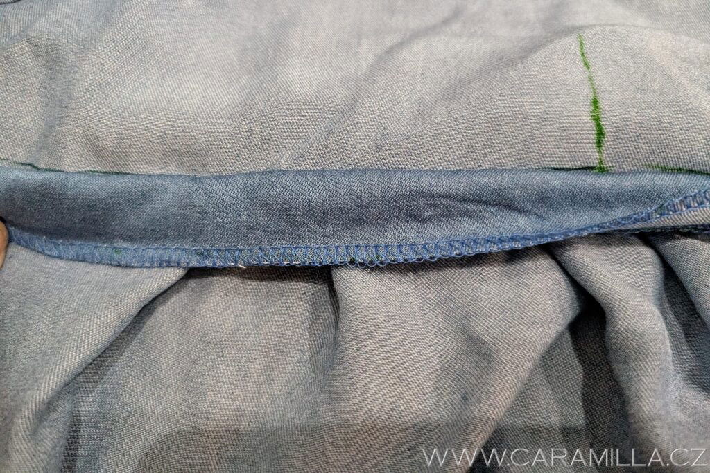 Spodní část si začistíme stejně jako rukáv – dvojí podhrnutí do tenoučkého lemu.