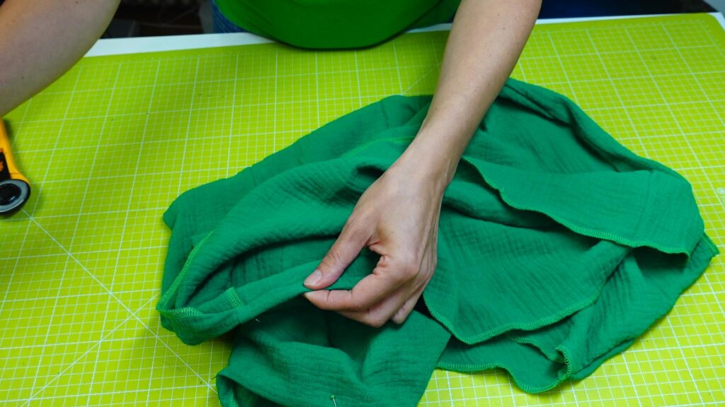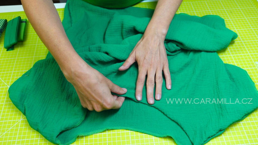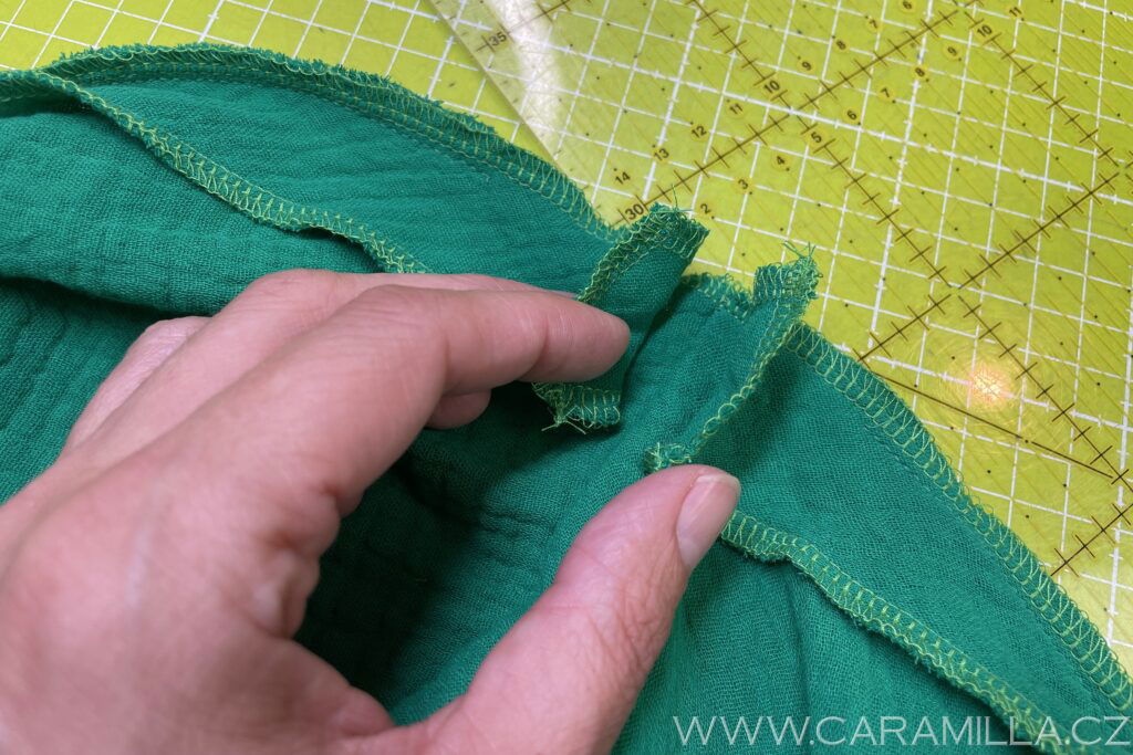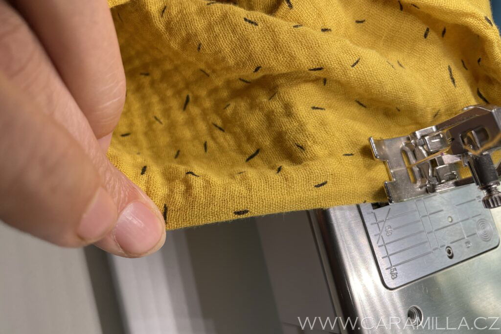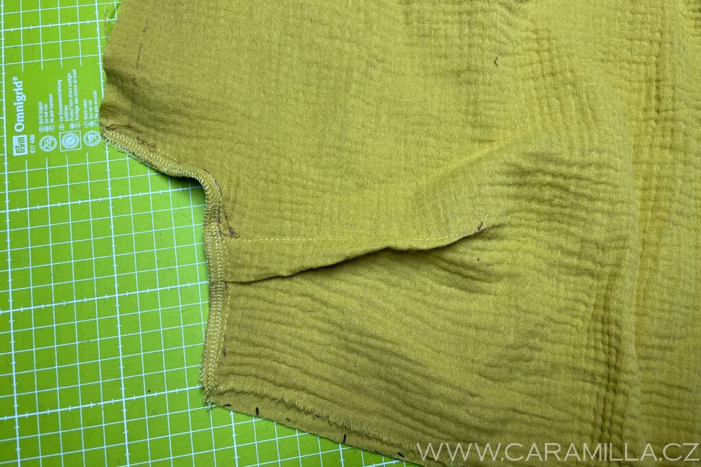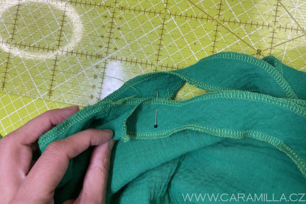 Spodní část si začistíme stejně jako rukáv – dvojí podhrnutí do tenoučkého lemu.