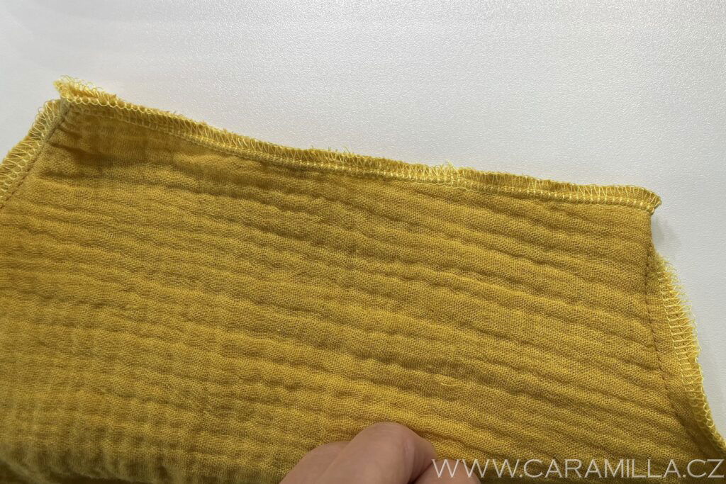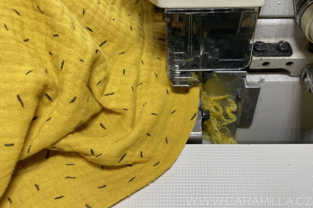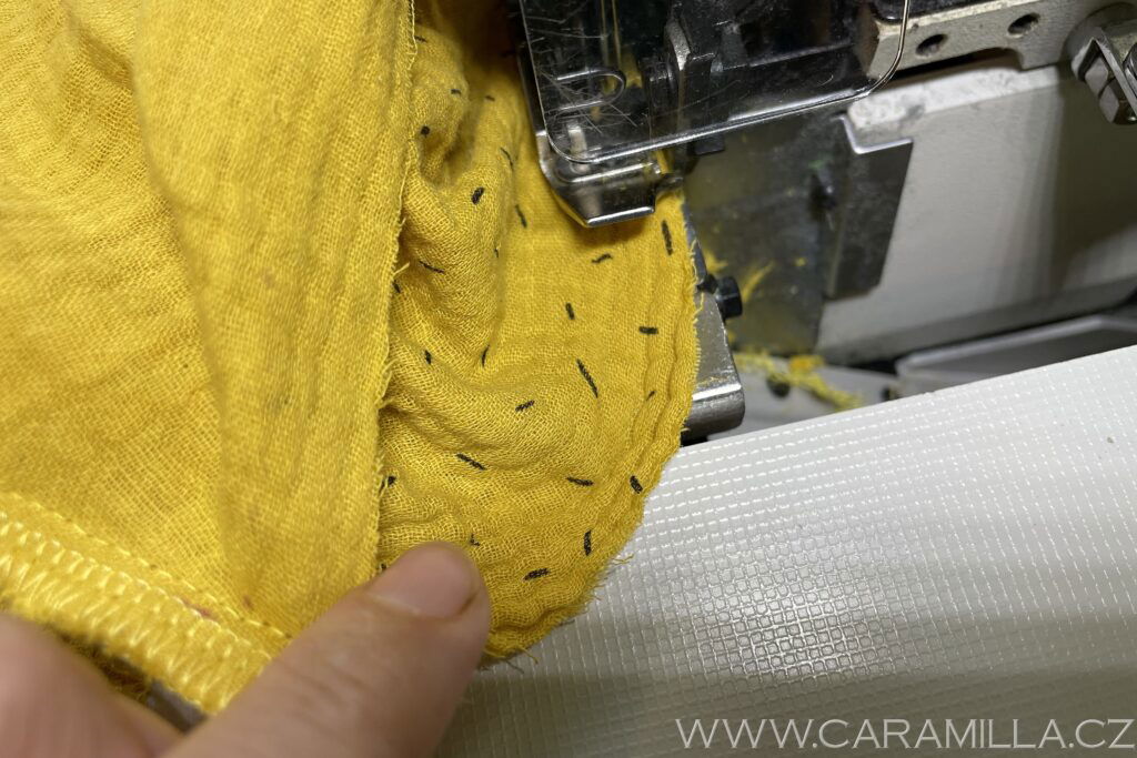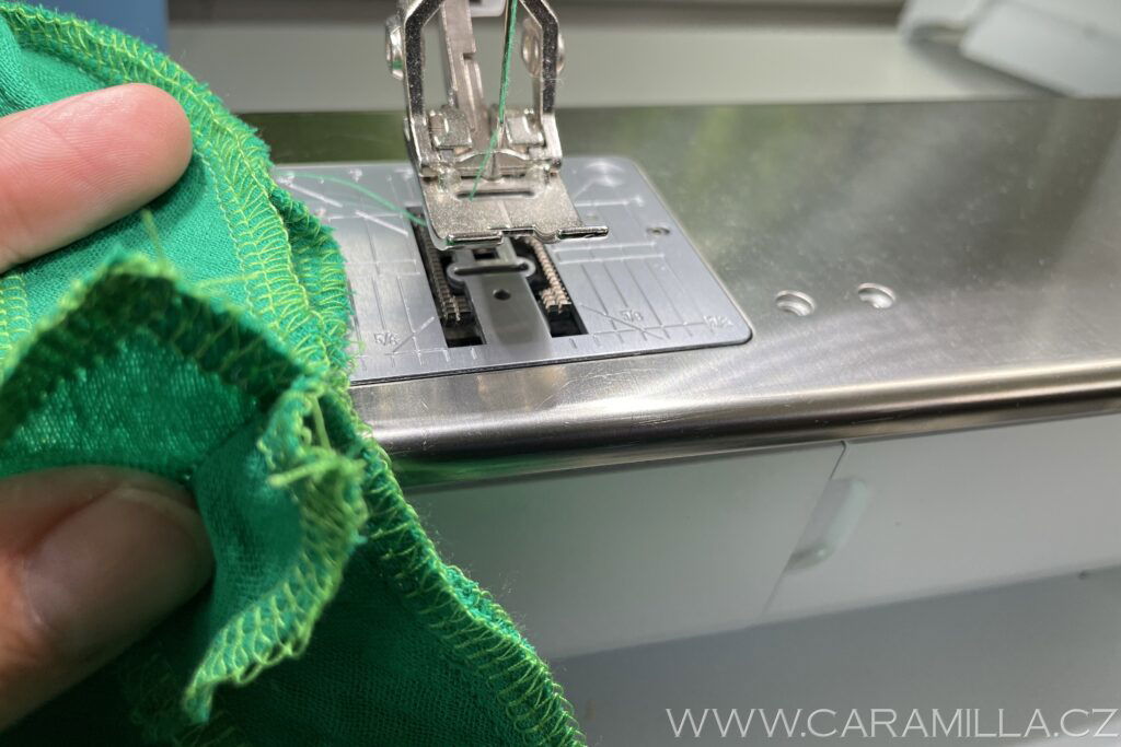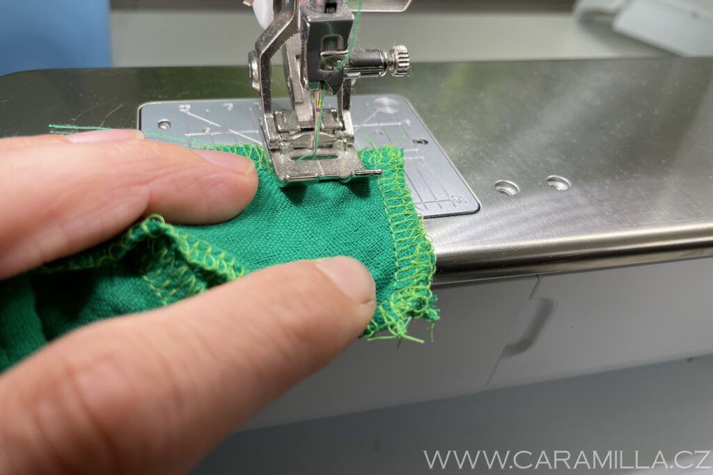 Zde je vidět overlockový steh, který schováme do lemu.
