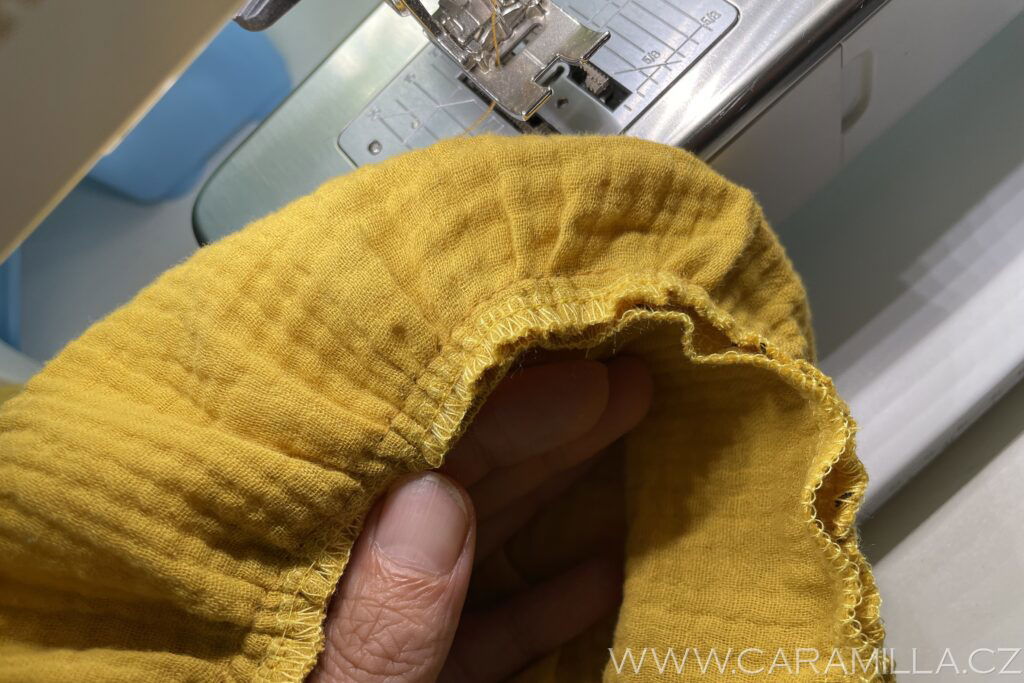 Rukávy obšijeme overlockovým stehem. Pokud nemáme, tak cikcakem.