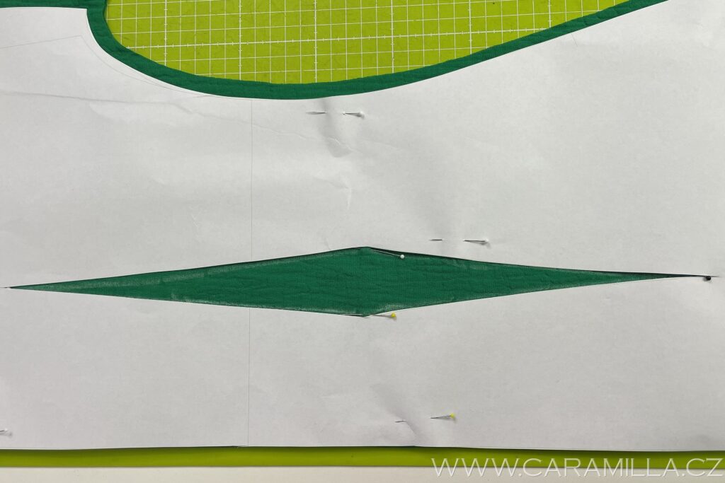 A dobře si vyznačíme oba záševky na zadním díle – u šatů v celku.