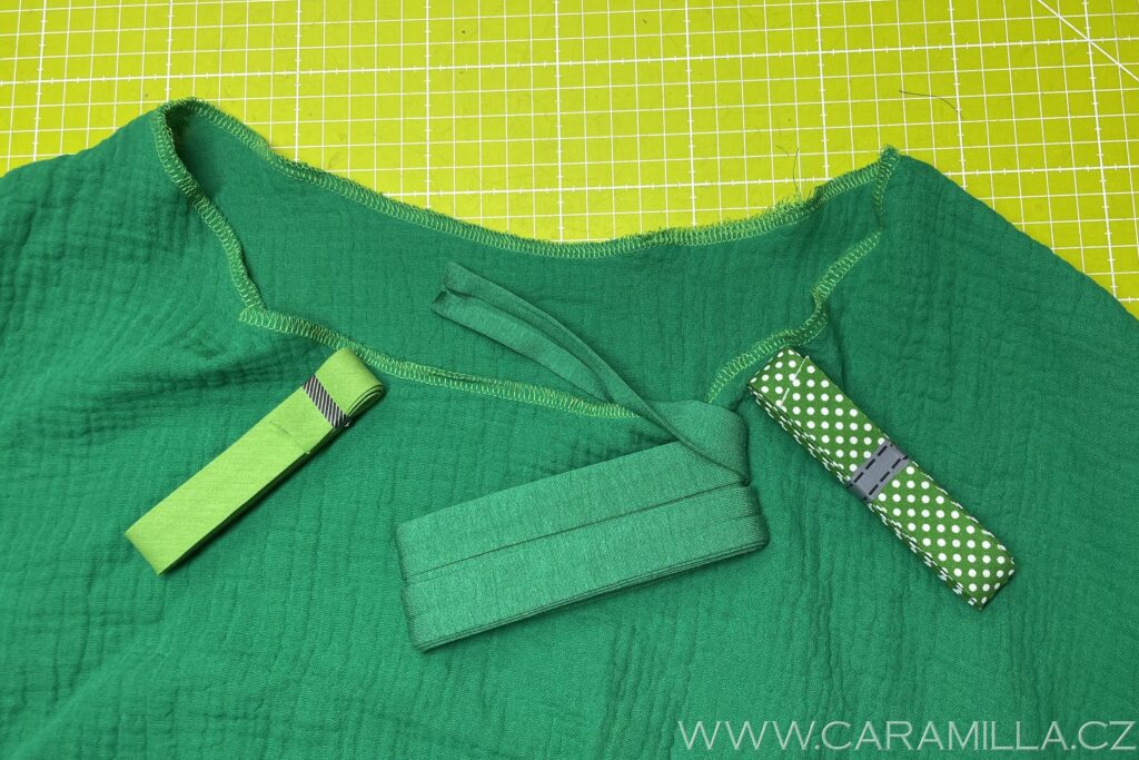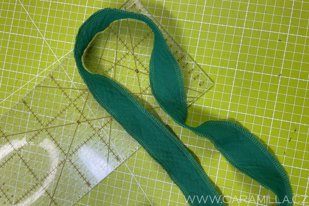 K obvodu vrchní části šatů si připravíme ještě pásek stejného obvodu a šířky cca 4 cm. Obojí si začistíme.