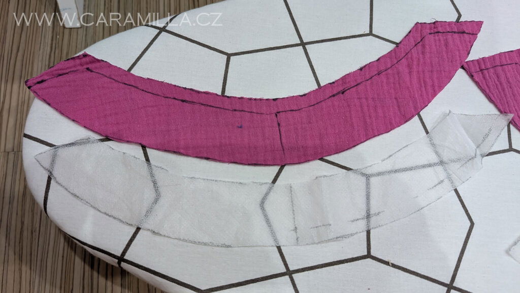 Pomoci si můžeme i zažehlovacím proužkem, který nažehlíme úplně na okraj střihového dílu.