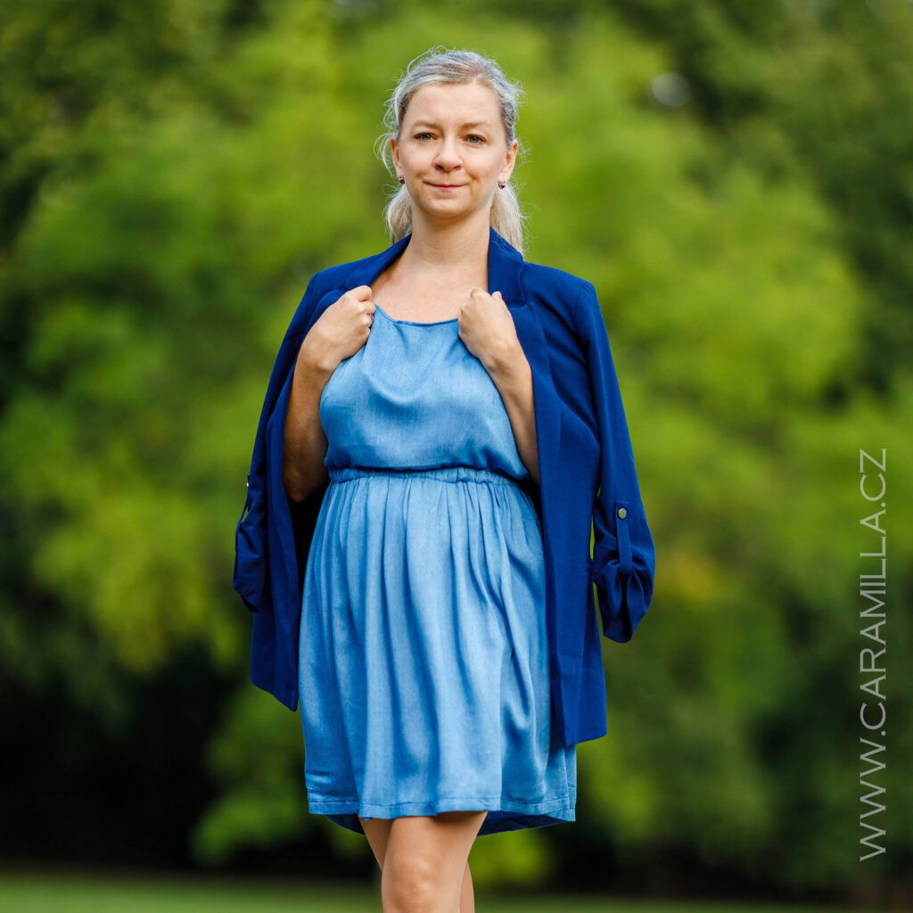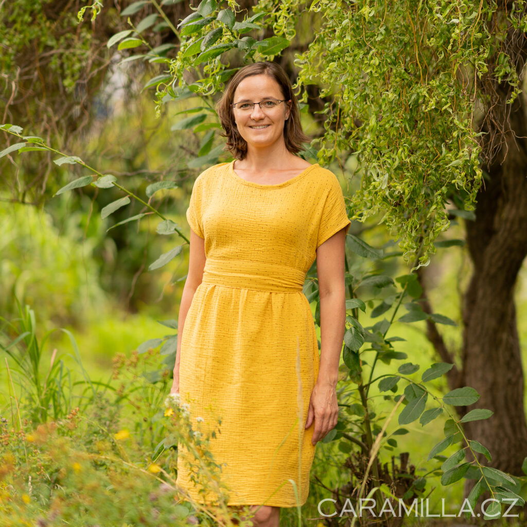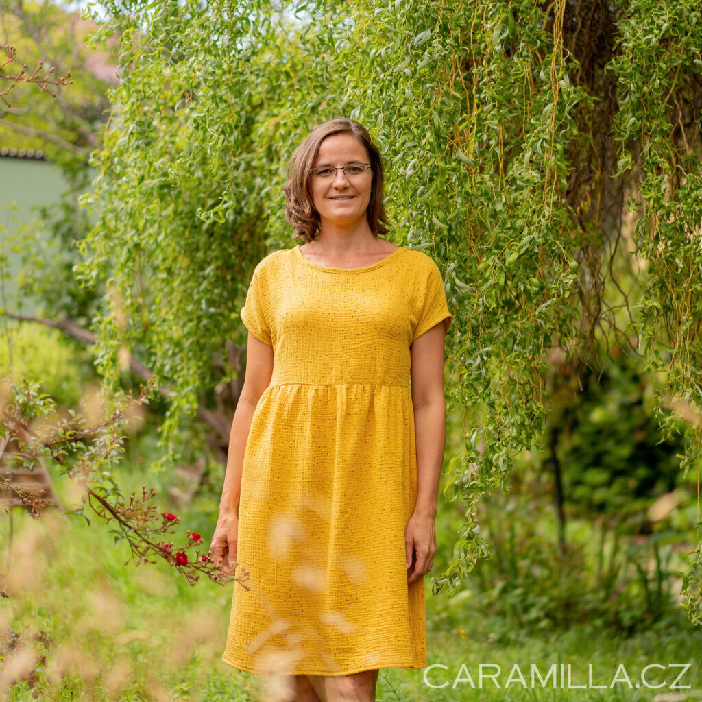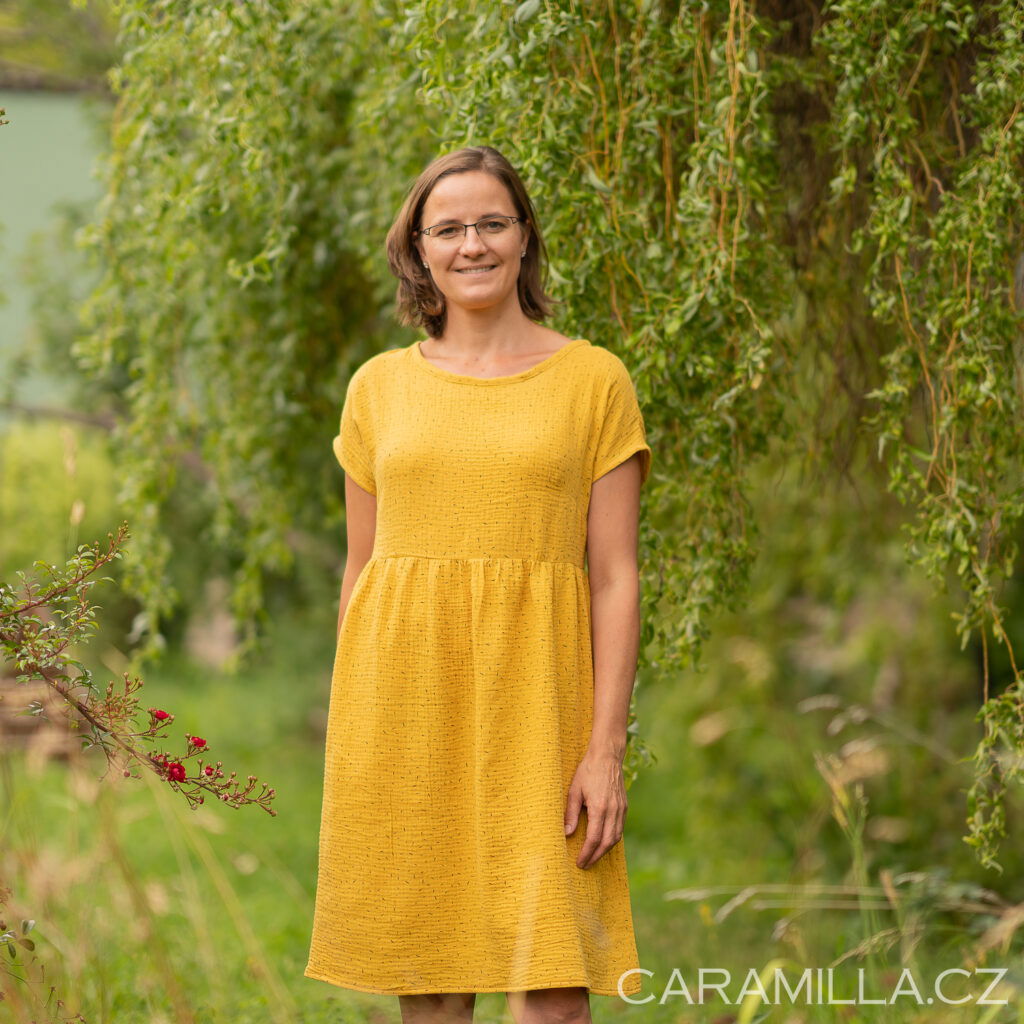 Doporučení pro výběr velikosti z tkaniny – obvod přes prsa u šatů by měl být cca o 15 cm víc než obvod přese prsa postavy, aby šaty byly dostatečně volné / plandavé a šly dobře obléci.