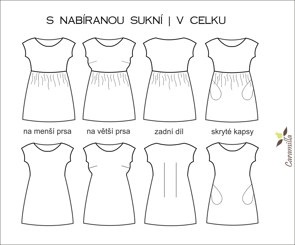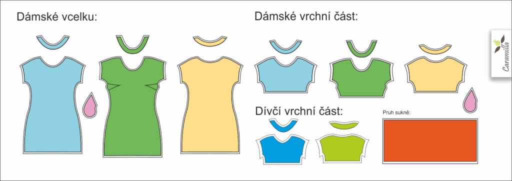 Součástí střihu na šaty v celku je: