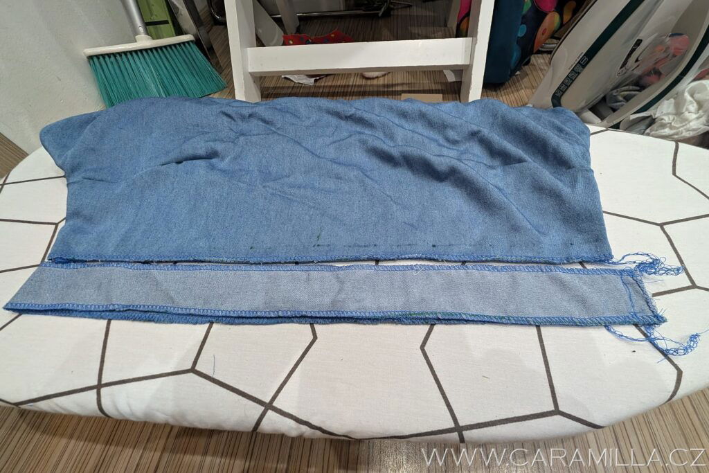 Proužek si ještě začistíme z druhé strany – neudělala jsem to před našitím, tak jsem začistila až po našití.