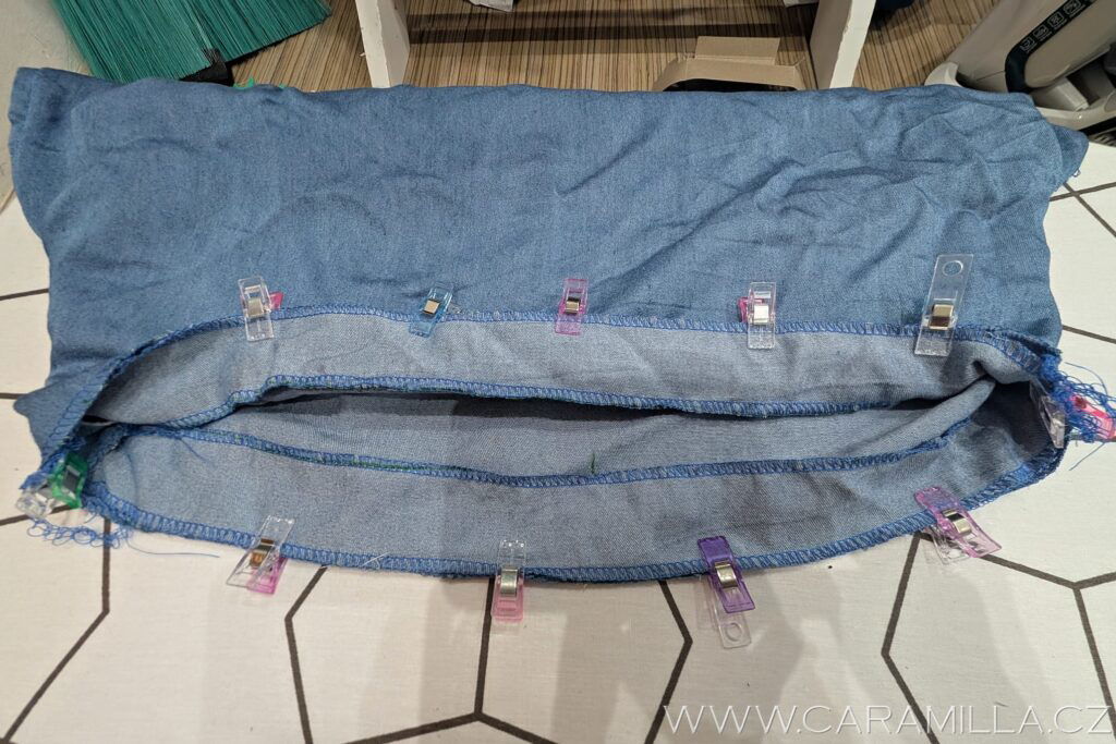 Mám našpendleno dokola – vidíte, že se hezky schovají overlockové švy do lemu a vypadá to hezky i z rubu.